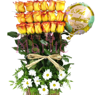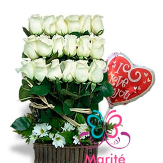 Canasta Paraiso, elaborada con 5 Strelitzia reginae, también conocida como ave del paraíso, acompañada de liliums y flores en tonos morados.