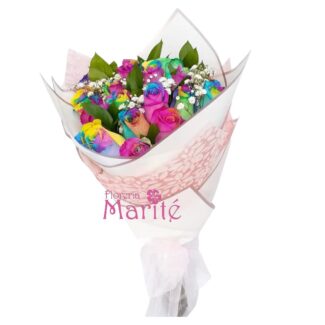 Circular Elevada de Rosas Rojas, elaborada con 20 rosas rojas y 3 pequeños bombones.