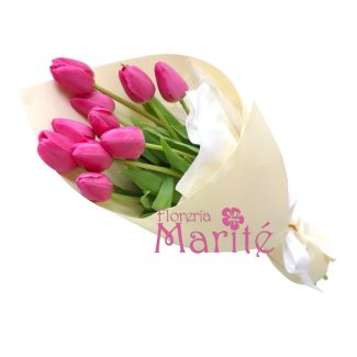 Bello arreglo floral elaborado con 20 tulipanes naranjas.